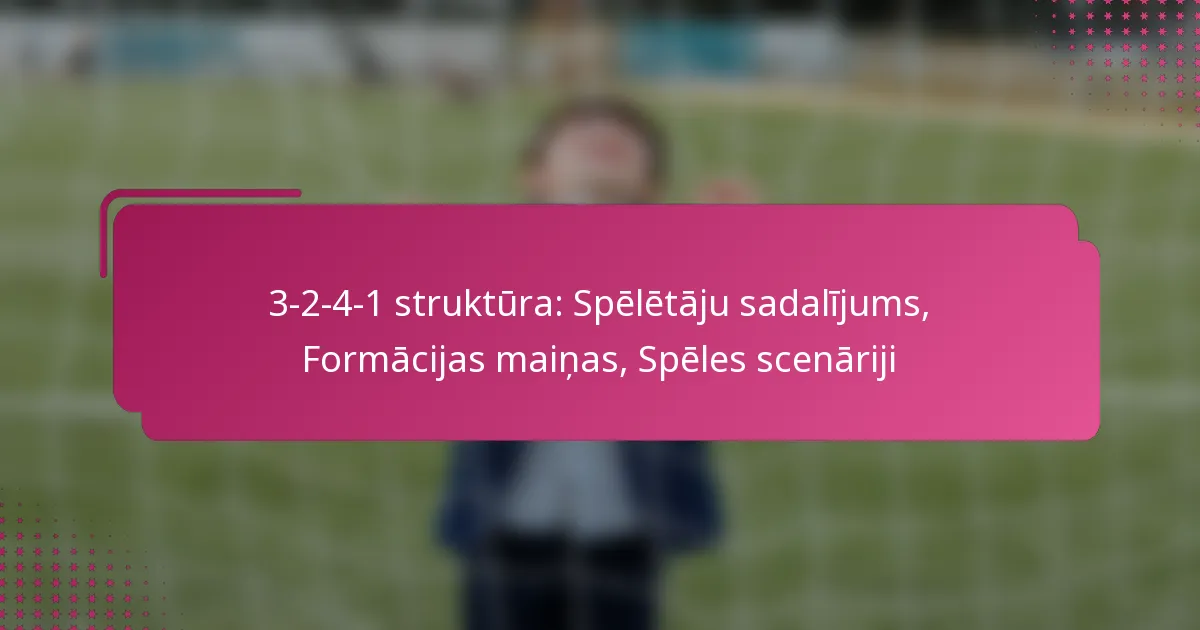 3-2-4-1 formācija piedāvā unikālu spēlētāju sadalījumu, kas uzsver gan aizsardzības stabilitāti, gan uzbrukuma elastību. Šī struktūra sastāv no trim aizsargiem, diviem aizsardzības vidusslīmeņa spēlētājiem, četriem uzbrucējiem un viena uzbrucēja, ļaujot komandām efektīvi pielāgoties dažādām spēles situācijām.